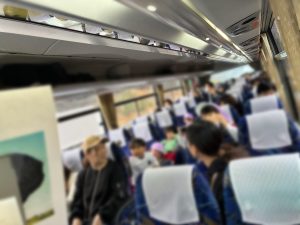 バスの中での時間は、クイズをしたりお友だちとおしゃべりをしたりと
